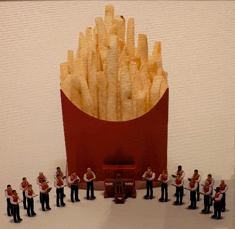 この作品のタイトル「パイプオルガンSサイズ」マクドナルドのポテトを音色豊かなパイプオルガンに見立て、国や文化の違う人々が、世界中で愛されている「いつもの味」を楽しんでいる様子が表現されています。
