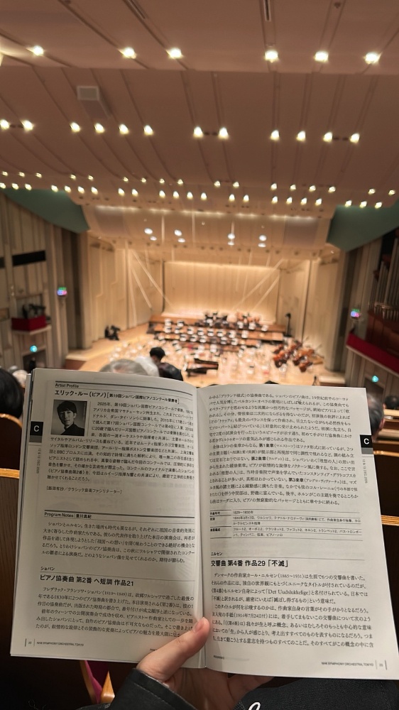 ショパン国際ピアノコンクールで1位に輝いたエリック・ルーさんのコンサートに行ってきました。。NHK交響楽団との共演で、ずっと楽しみにしていました。会場は東京・渋谷のNHKホールです。