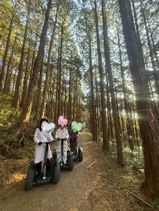 橋を渡った先では、思いきって60分のセグウェイの森探検コースに参加。