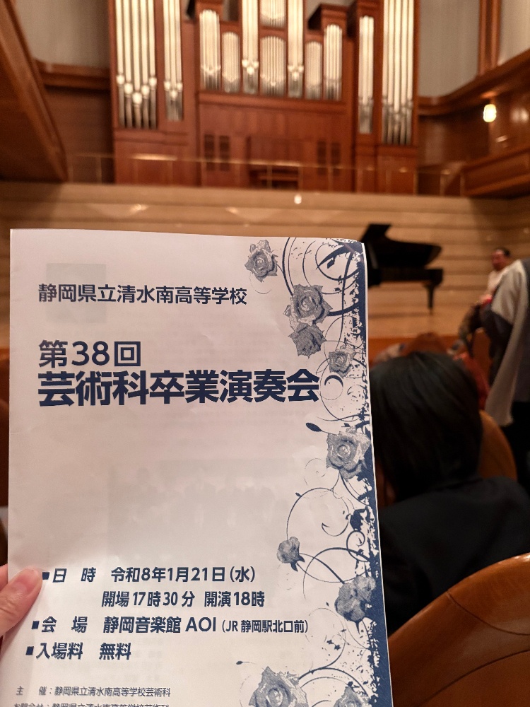 娘の母校である清水南高校芸術科の卒業演奏会へ行ってきました。